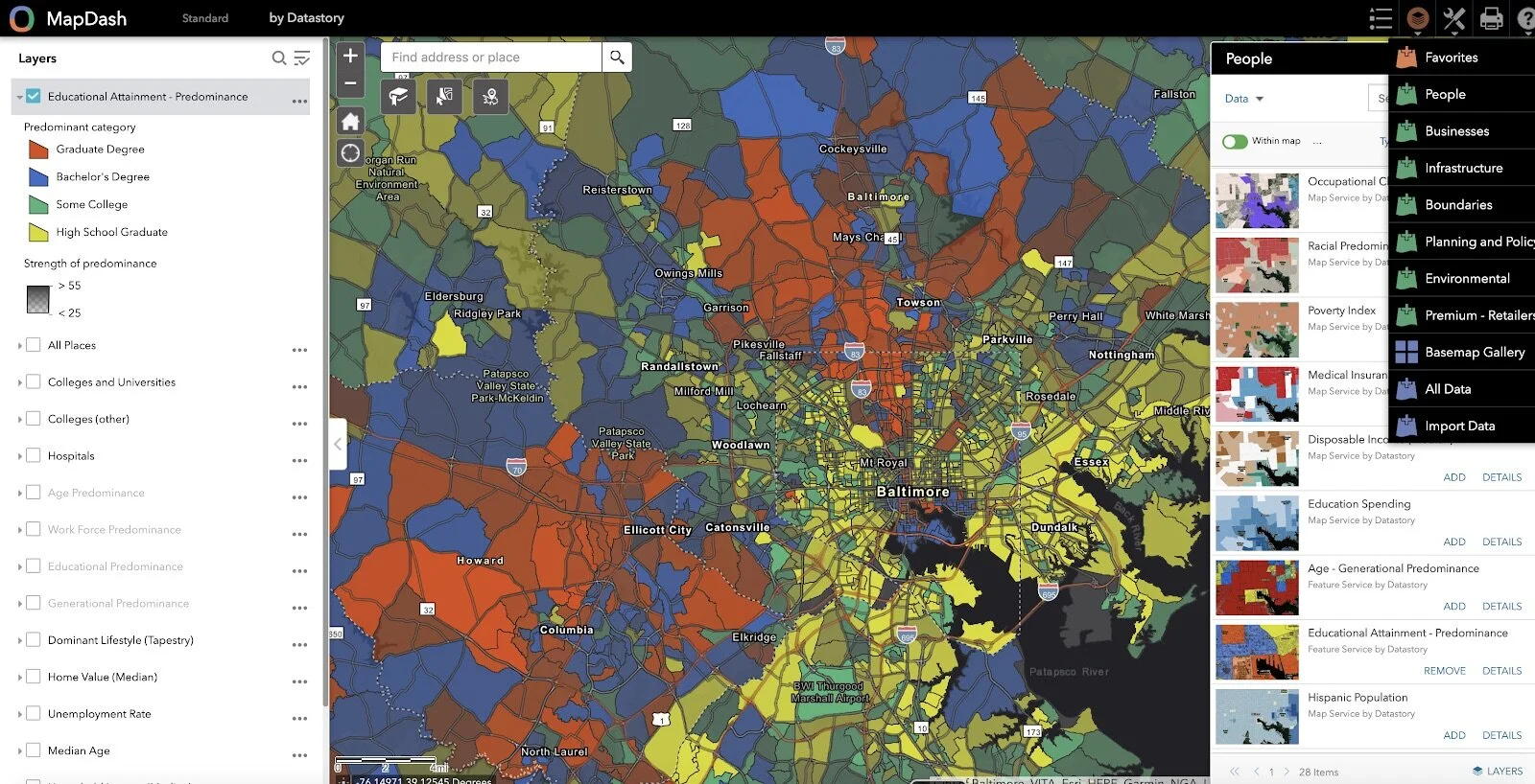 By leveraging the best sources of data and proven Esri technology, MapDash helps guide your decision making process and give a voice to your data.