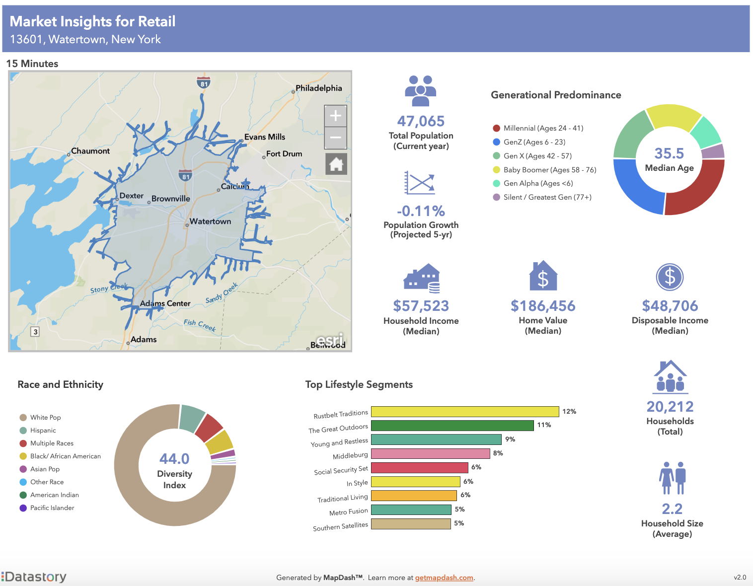 MapDash is a one-stop-shop for retail location intelligence, empowering professionals from all levels of technical experience with the data, analytics tools, and reporting templates needed to develop a data-driven category management strategy. Preconfigured with hundreds of datasets from authoritative sources, MapDash makes it easy for category managers to explore layered datasets together on an interactive map. From consumer foot traffic to lifestyle segments to income and everything in between, retailers can instantly access up-to-date information at multiple geographic scales to derive more informed strategies. What’s more, MapDash provides turnkey location analysis tools related to proximity, drive/walk times, and place filtering so category managers can easily sift through big data to uncover important insights. All of this data and analysis can be succinctly summarized and shared with other stakeholders using MapDash’s ready-made infographic templates, ensuring the key takeaways from location intelligence are accessible to anyone who needs them.