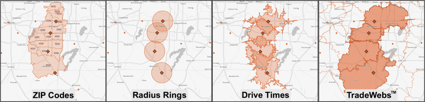 In the past, markets were defined by ZIP codes and radius demographics, and ultimately drive times. While each of these was better than the previous, none of these methods reflect how people behave (we don’t follow postal delivery trucks or fly like crows to the “nearest” store.)